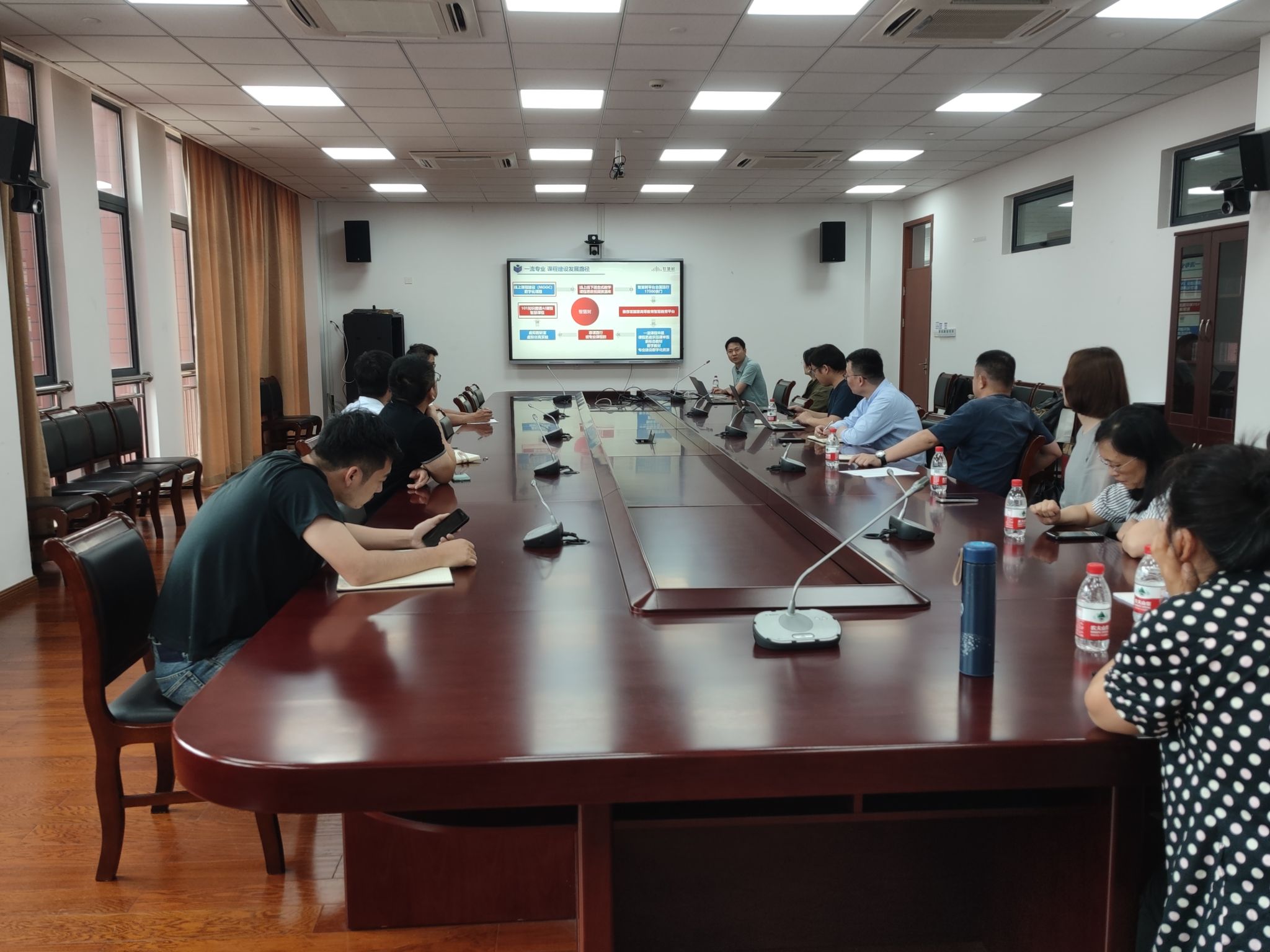 为推动91porn 一流课程建设,帮助教师提高数字化教学能力,6月26日下午,91porn 在南楼1409会议室举办“知识图谱AI课程与新形态教材建设”研讨会,教学副院长叶晓飞、系主任和一流课程负责人等20余位教师参加。