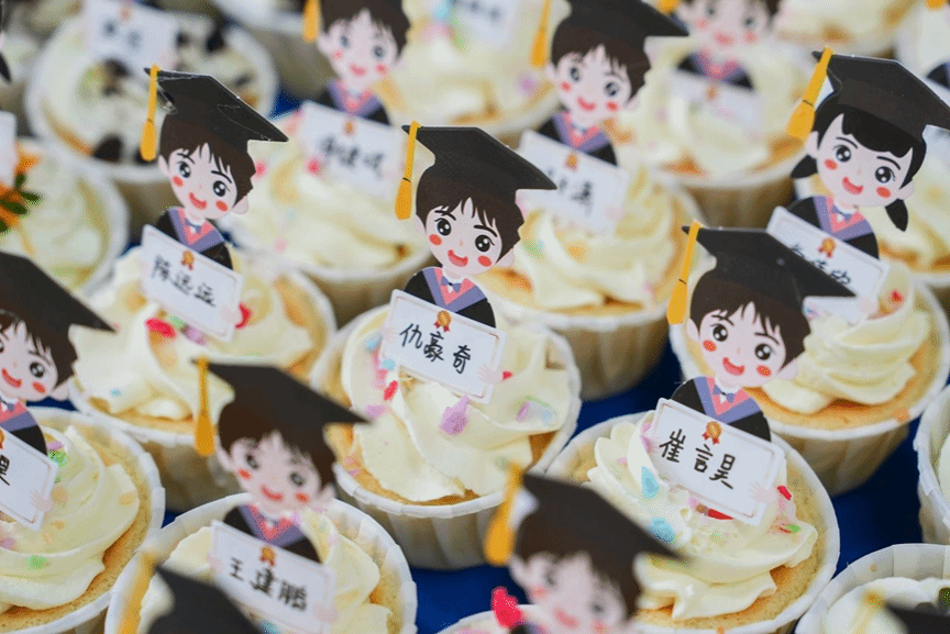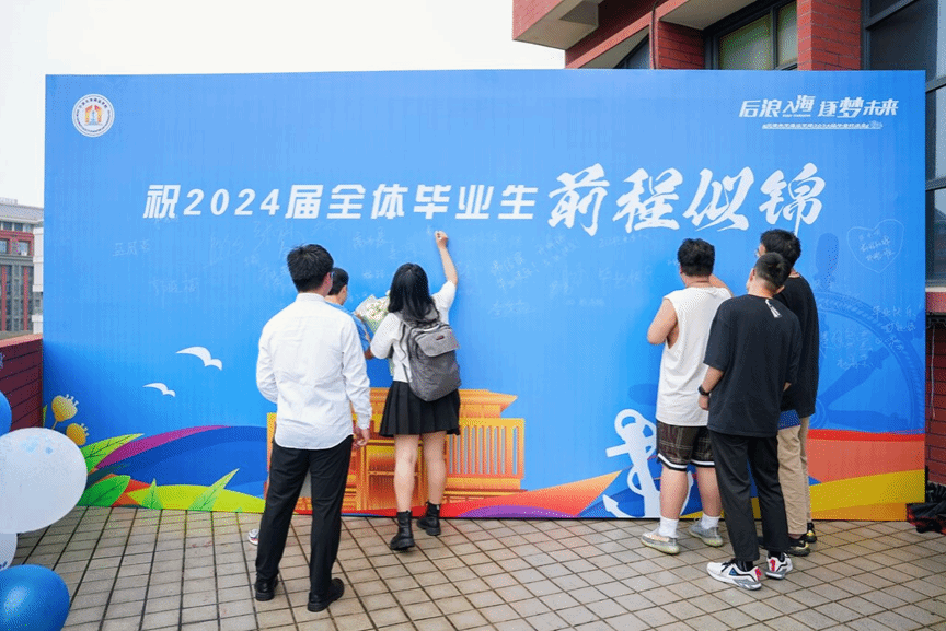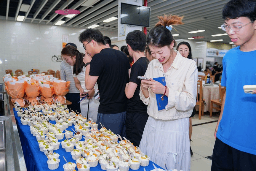 欢送会开始前,毕业生在签名墙上写下对学院的祝福,领取学院为毕业生准备的专属小蛋糕和“小幸运”。