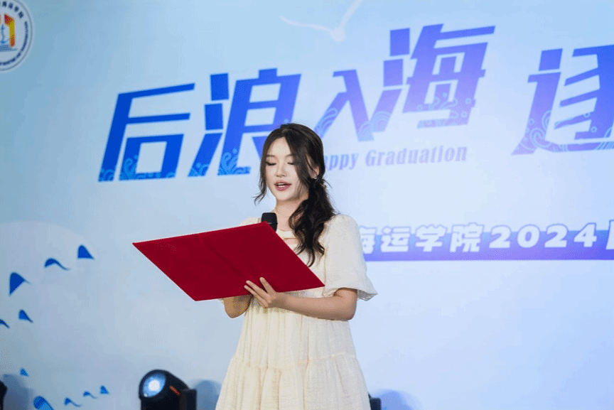 2020级轮机工程专业本科生杨洁作为毕业生代表发言,向学校、学院及所有老师表达了深深的感激,并讲述了自己对未来的信心和期待。她祝愿同学们在未来的道路上取得成功,共同书写精彩的人生篇章。毕业生代表也为学院献上礼物,以此表达对母校和学院的祝愿与感恩。