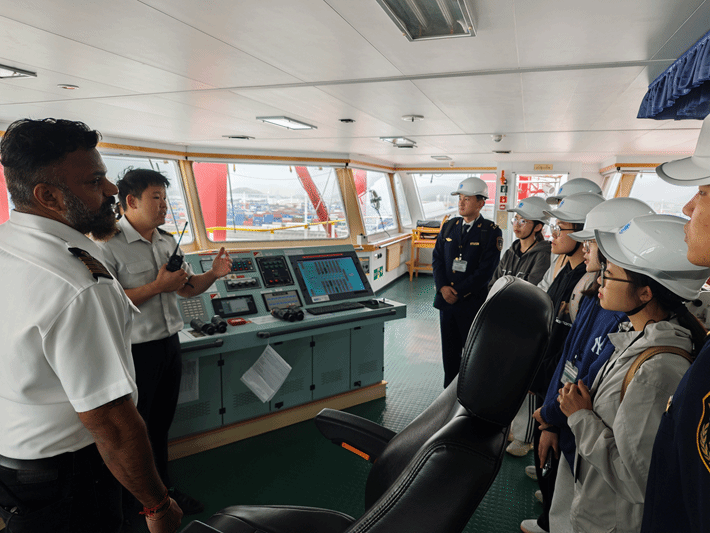 随后,在船员的引导下一行人前往操作室参观学习。各种复杂的设备、指示灯眼花缭乱,课堂的理论知识也难以完全应对实际应用,团队成员深感学好专业课程的重要性,只有更加扎实地掌握专业知识,才能在未来的实践工作中不落下风,展现海运学子的实力。
