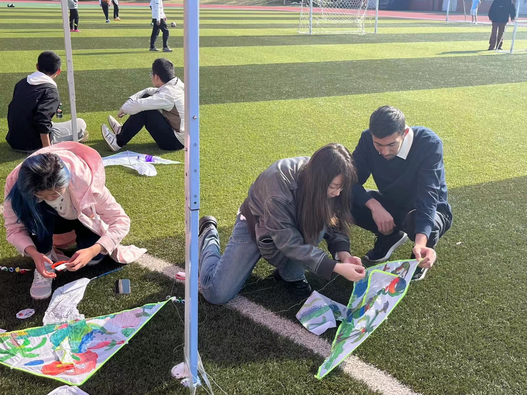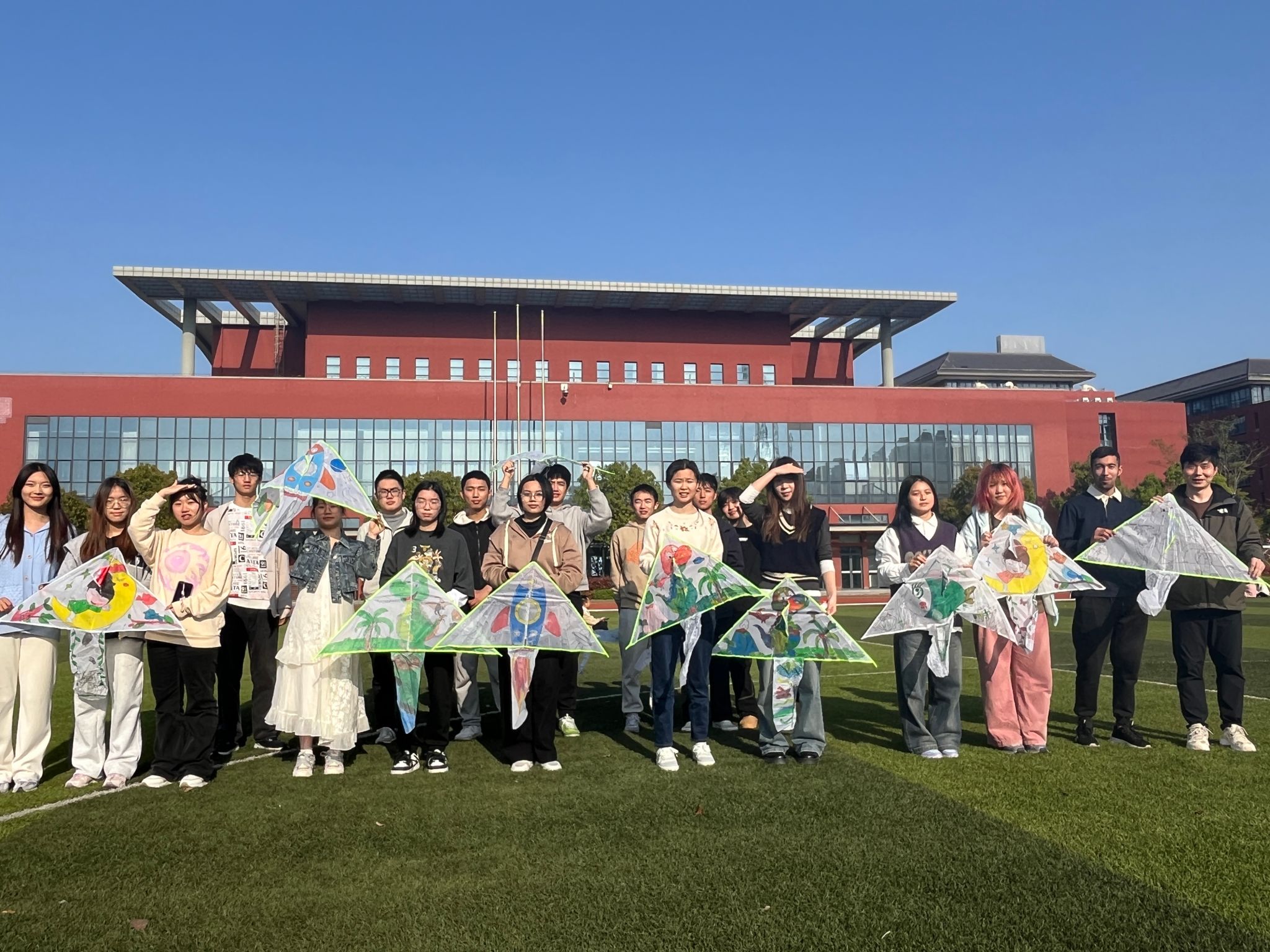 放飞过后,是分享与交流环节。大家围坐一起,分享放风筝过程中的感受和经验。21级船海专业学生许嘉辉表示,通过绘制风筝和放飞风筝,感受到了创作的乐趣和成就感; “我非常喜欢中国文化,放风筝非常有趣、漂亮” ,来自乌兹别克斯坦的22级港航专业留学生艾布朗分享到,他迫不及待想把这次的体验分享给家人和朋友。