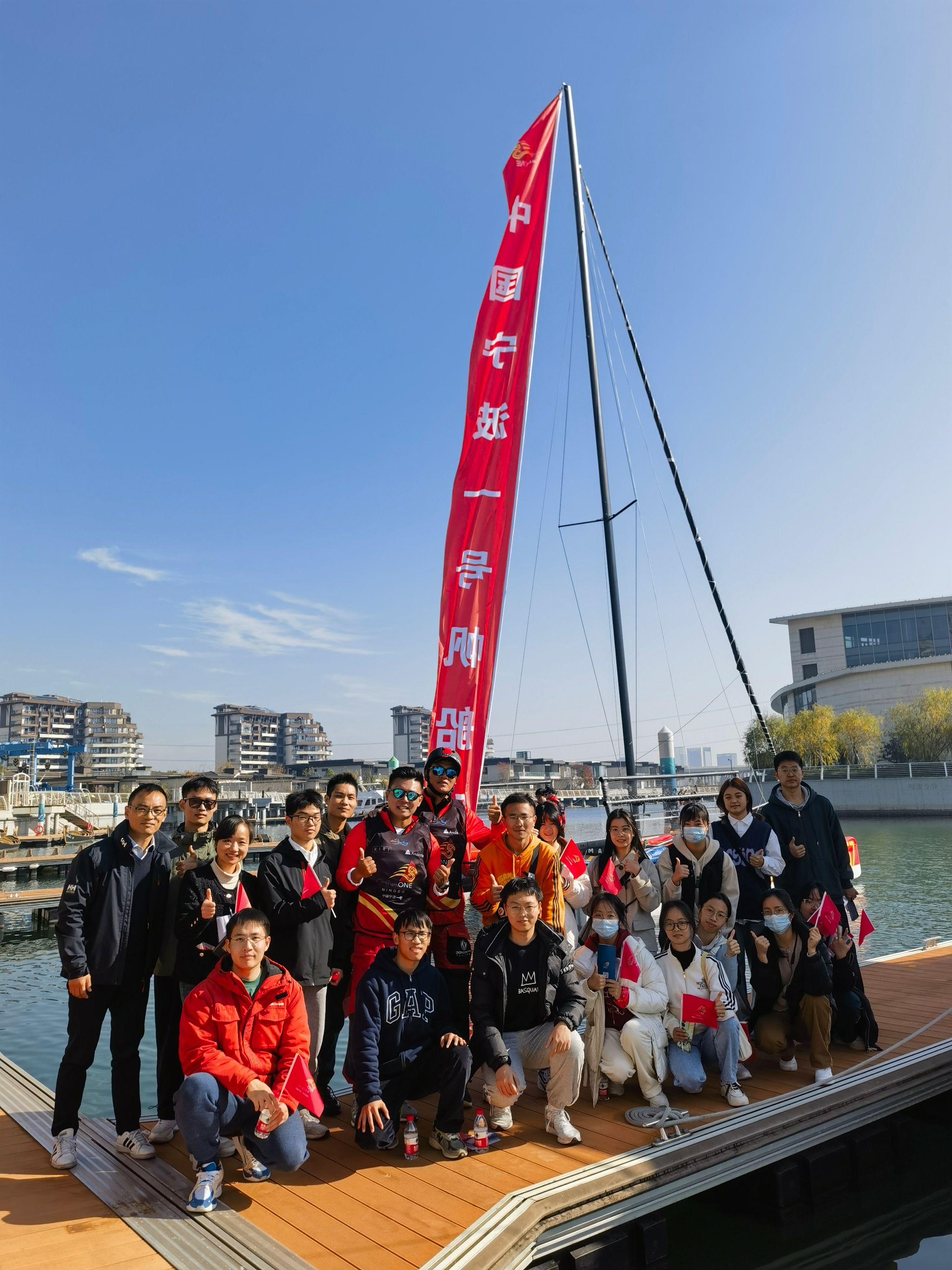 12月6日,由包文骏创建的中国宁波一号职业竞速帆船队,首次在北仑梅山湾母港进行展示交流活动,91porn 数十位学生受邀参与。