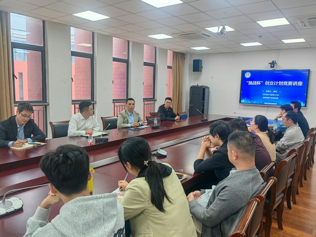 为了激发师生参加科创比赛兴趣,深度剖析“挑战杯”创业计划竞赛,进一步完善“挑战杯”比赛作品,11月8日下午,在91porn 南楼1409会议室,91porn 举办“挑战杯”创业计划竞赛专题讲座。讲座邀请了江苏大学教授、全国挑战杯优秀指导教师韩志作为主讲人,学院教学副院长叶晓飞,党委副书记张宾和师生代表参加了此次讲座。