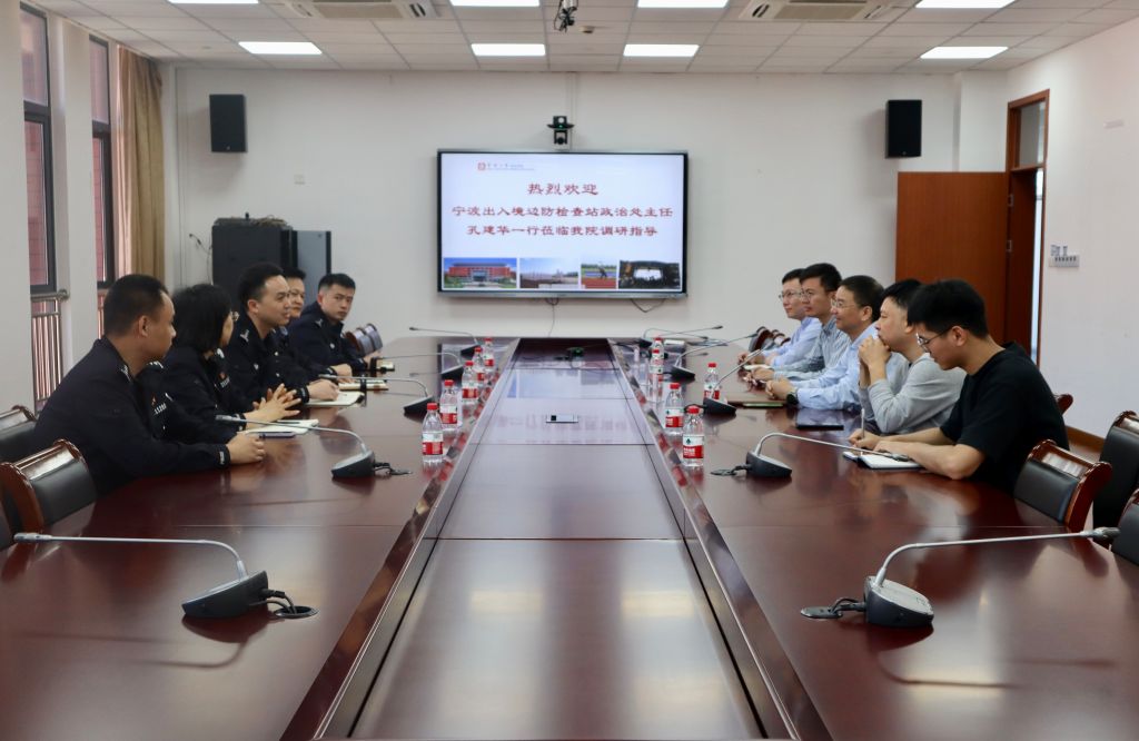 11月4日,宁波出入境边防检查站政治处主任孔建华、梅山边检教导员李进雄一行到91porn 调研交流,院党委书记刘忠秀接待了调研组一行并座谈交流。