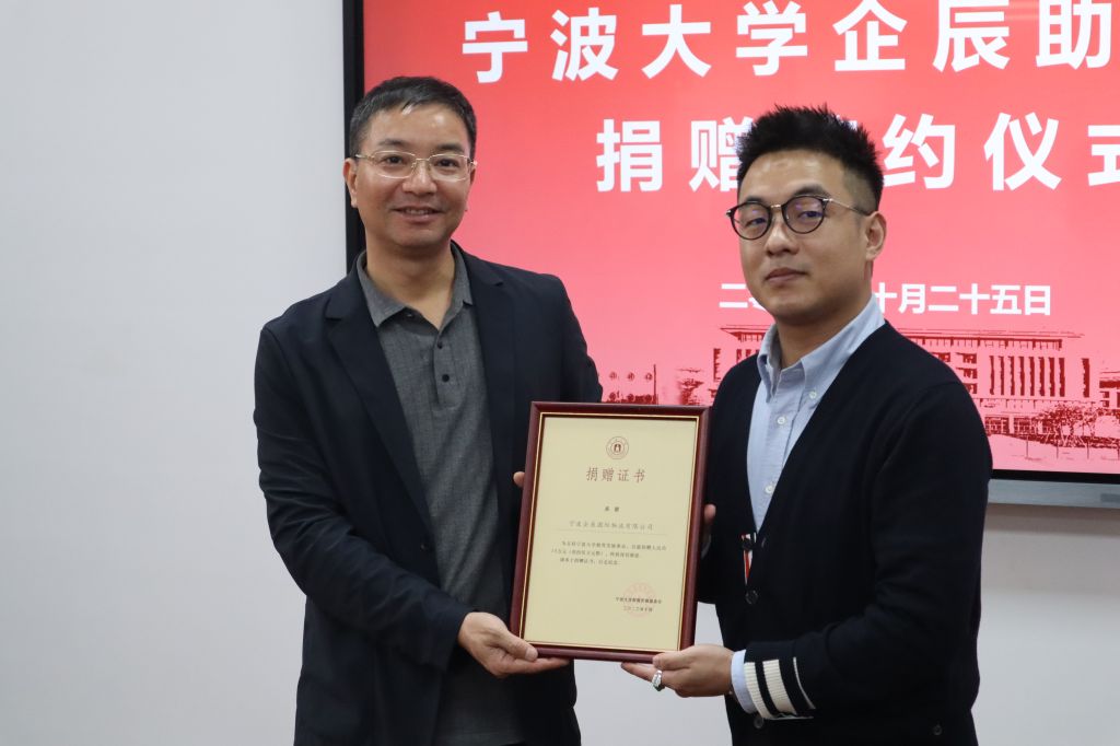 10月25日下午,91porn 企辰助学金捐赠签约仪式在91porn 梅山校区91porn 1409会议室举行,宁波企辰国际物流有限公司总经理朱力孟先生,91porn 党委书记刘忠秀,宁波企辰国际物流有限公司代表,91porn 师生代表出席捐赠仪式,仪式由91porn 党委副书记张宾主持。