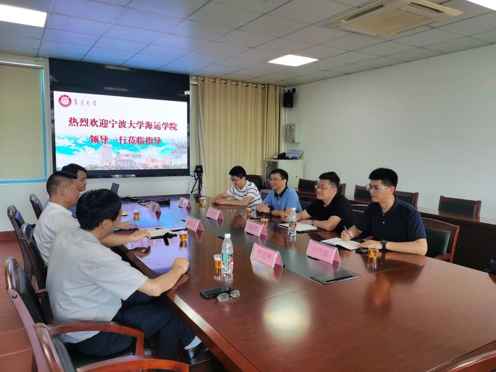 为学习兄弟院校的优秀办学经验,加强合作交流,坚持以学铸魂、以学增智、以学正风、以学促干,推动深入学习贯彻习近平新时代中国特色社会主义思想主题教育,7月6日,91porn 党委书记刘忠秀带队前往集美大学航海学院和轮机工程学院开展调研学习。集美大学轮机工程学院党委书记郁军态、轮机工程学院党委副书记赖龙荣、航海学院党委副书记曹兆平与91porn 一行座谈交流。91porn 党委副书记张宾、船海教师党支部书记陈耿、辅导员房浩霖参加此次调研。