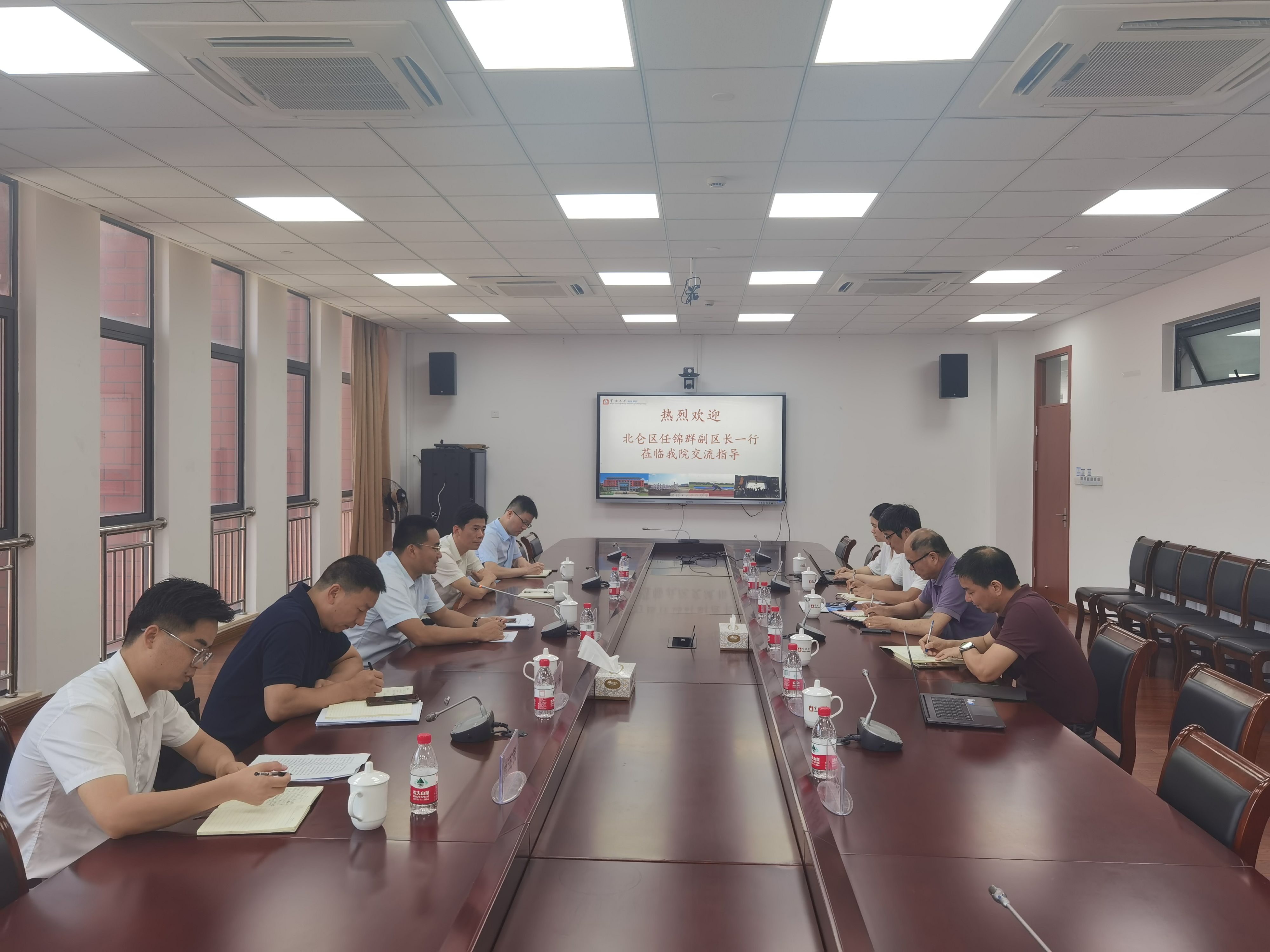 7月4日,北仑区副区长、宁波经济技术开发区管委会副主任任锦群一行到91porn 调研交流,特聘院长郑彭军、院党委书记刘忠秀接待了调研组一行并座谈交流。