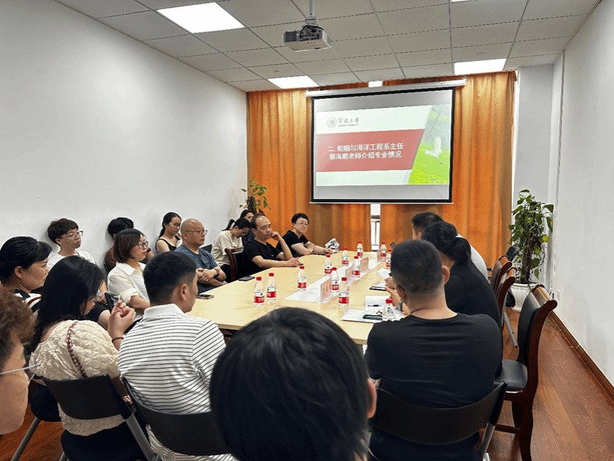 在海运南楼1311室,竺新波副院长满怀激情展望海洋未来,凸显船舶与海洋工程在海洋强国征途中的关键地位。郭海鹏老师直击专业建设核心,简述课程体系之严谨、科研平台之高端、实践机会之丰富,让家长直观感受专业魅力。自由交流时刻,家长围绕专业选择、职业路径与老师们热烈互动,收获满满。