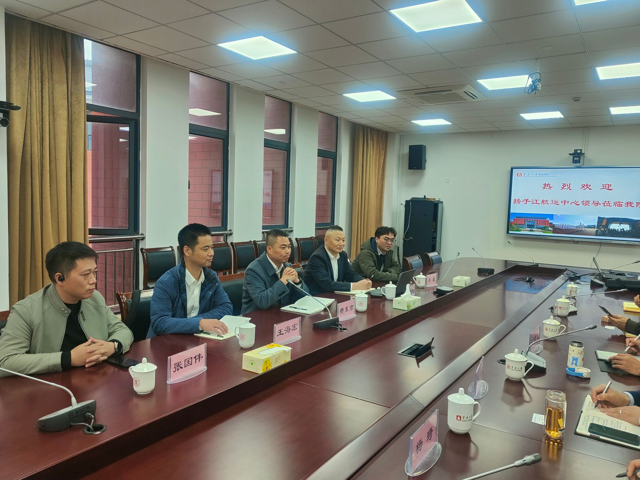 叶晓飞副院长指出,学院希望与扬子江船业(控股)有限公司在人才培养、产研融合及管理人才培训等方面进一步加强交流与合作。张宾副书记表示学院非常愿意与企业一同搭建就业平台,为学生提供丰富的实习和就业机会,同时也为企业储备优秀人才血液。发展部主任陈福洲表示学院与公司可就清洁燃料船舶船员培训业务、公司优秀师资人才支持等方面做更深一步的合作。