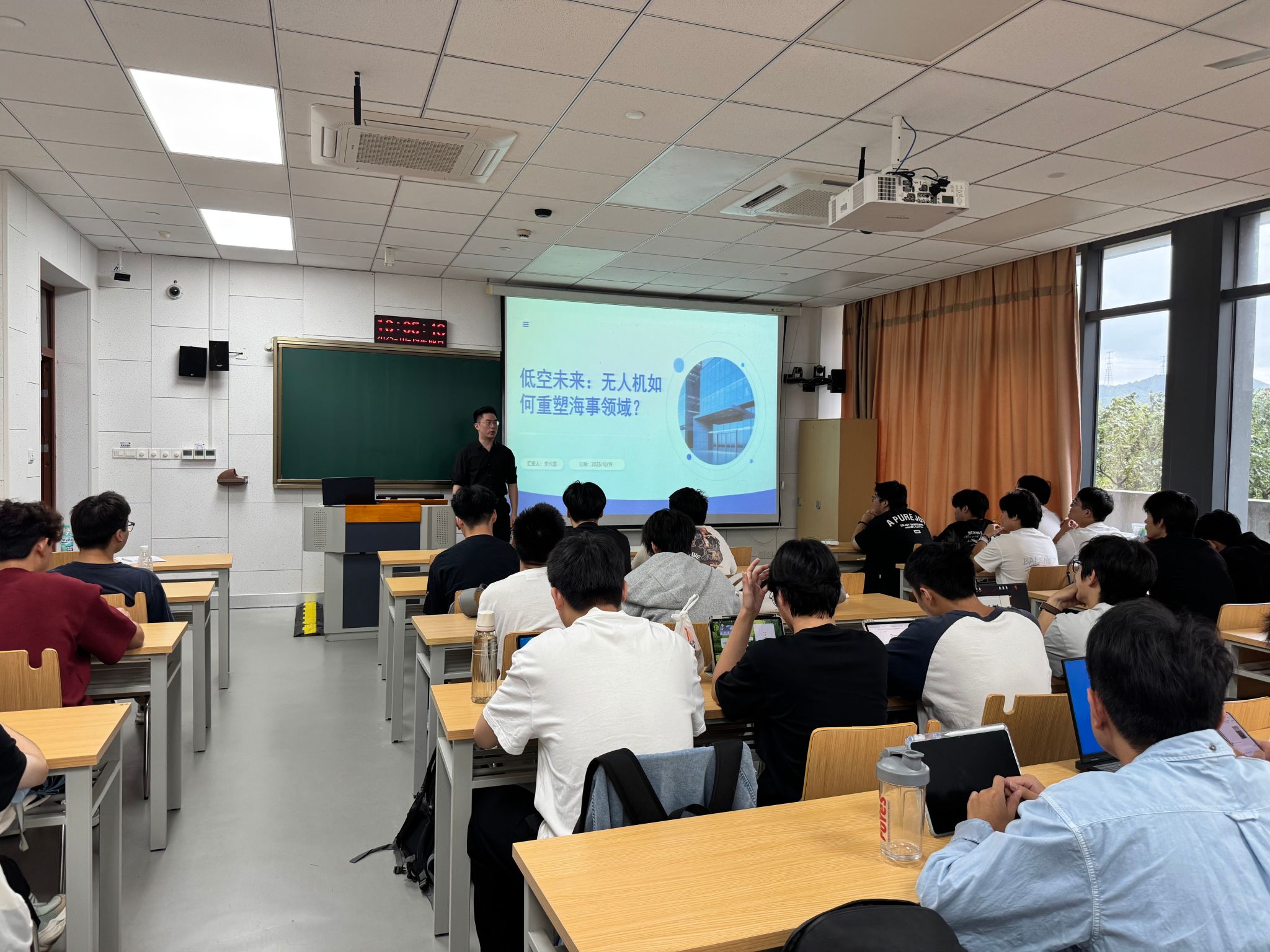 学院邀请浙江宁航无人机科技有限公司五位深行业专家组成教学团队,开展系统性课堂理论教学。课程内容紧密结合无人机行业发展趋势与岗位需求,重点讲解无人机飞行原理、航空法律法规、设备维护保养、应急故障处理等核心知识。理论课堂通过案例分析、小组讨论等互动式教学方法,将抽象的理论知识与实际应用场景相结合,帮助学生厘清无人机系统构成、飞行参数设置等关键要点。“老师通过分析实际飞行中的突发情况,让我们明白了理论知识在安全飞行中的重要性,也为后续的实践操作打下了坚实基础。”2023船舶与海洋工程专业学生李同学说道。